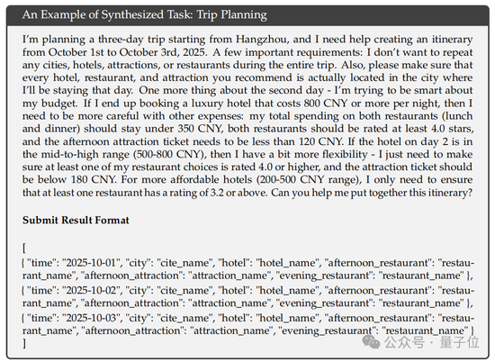 以旅行规划为例,模型需要在满足各种约束条件下规划三天的行程,包括不重复城市、根据酒店价格调整餐厅和景点预算等复杂逻辑。