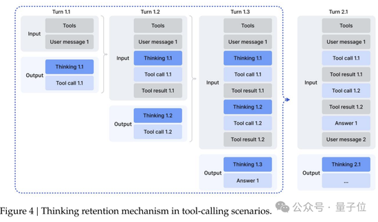 在思考上下文管理方面,团队发现DeepSeek-R1那种每次开启新对话就丢弃推理内容的策略,实在是太——浪费token了。