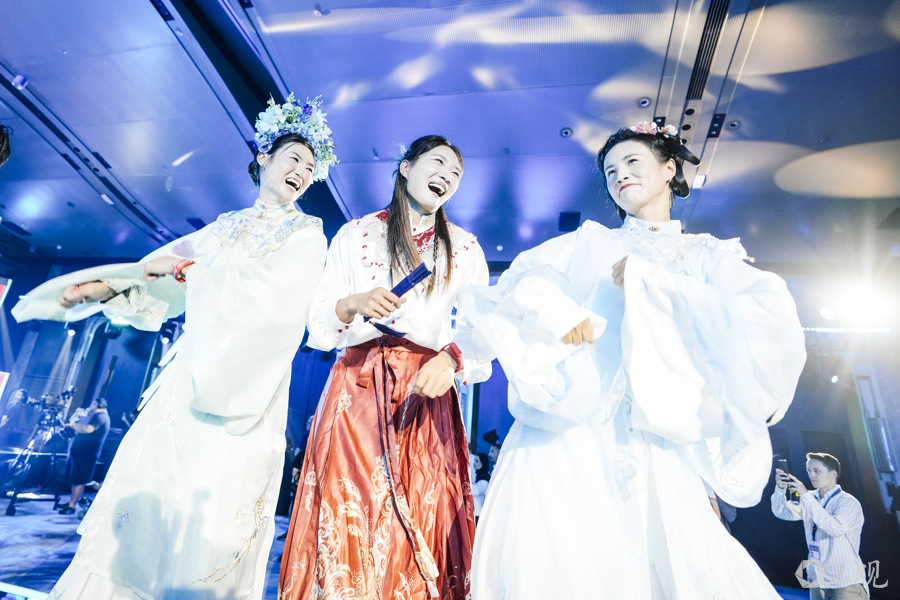 连上海籍选手张灵、陈云霞都是头回穿汉服、戴簪花,她们趁着间隙和外国选手合影:“这样的交流比说话管用,一下子就亲近了。” 帆船奥运冠军徐莉佳更带着大伙儿跳起了“科目三”,她坦言:“以前在国外比赛没机会这么‘晒’文化,这次在家门口当向导,挺骄傲的。”