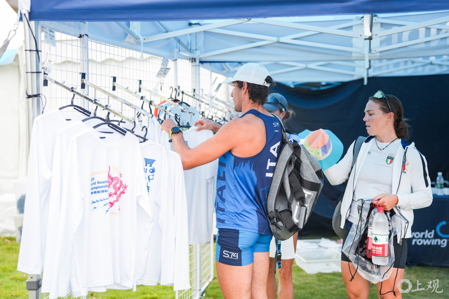 纪念品商店里每天人流不断,外国选手几乎人手一件纪念T恤。墨西哥选手埃里克西斯一眼看中了一件白色长袖文化衫:上面印着上海元素,还画了一条龙,让他爱不释手。“这衣服是吸汗快干材质,训练时也能穿,特别实用。”据店员介绍,200多元一件的纪念衫销量最好。对运动员来说,把上海赛艇与中国文化“穿”回家,是再好不过的选择。